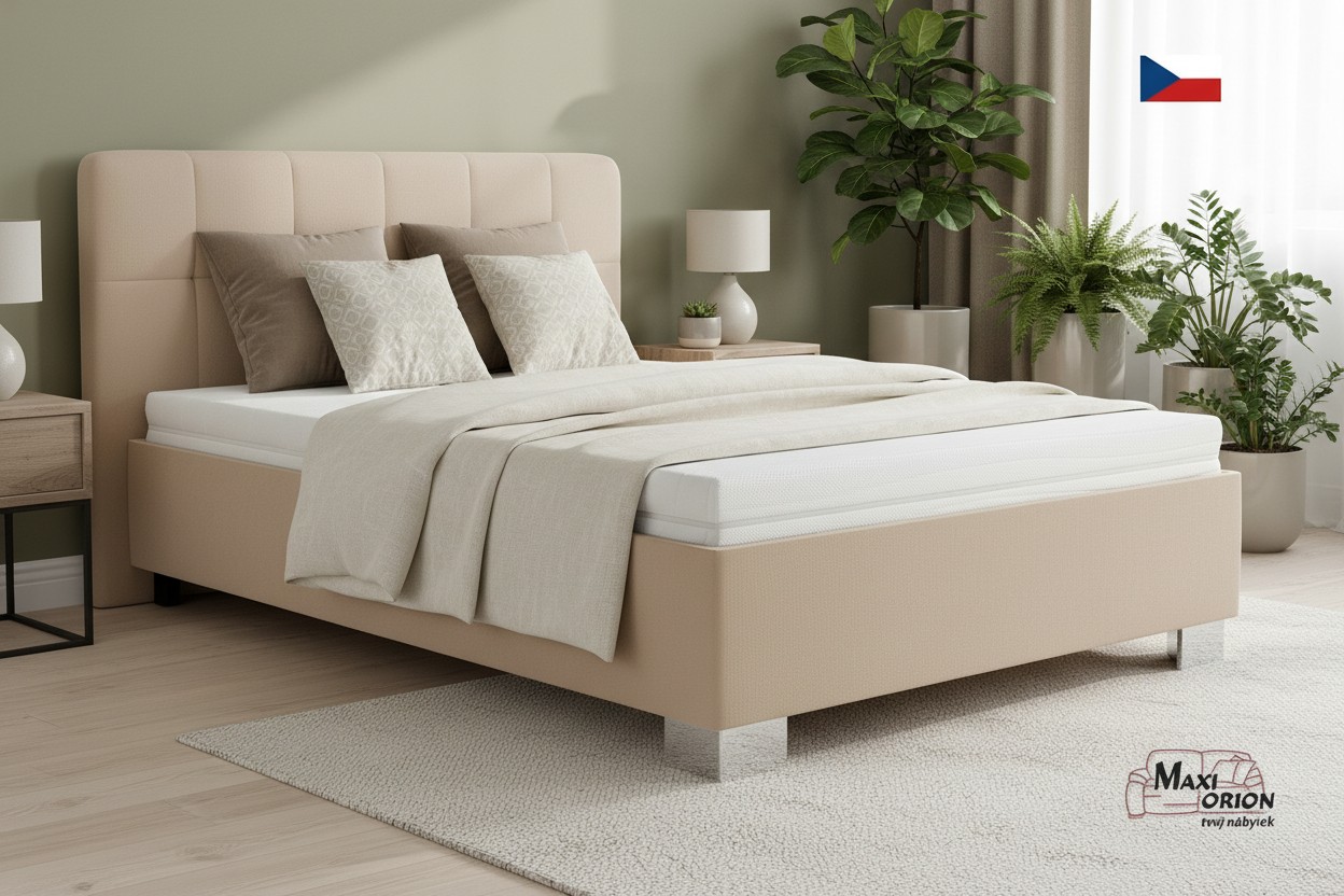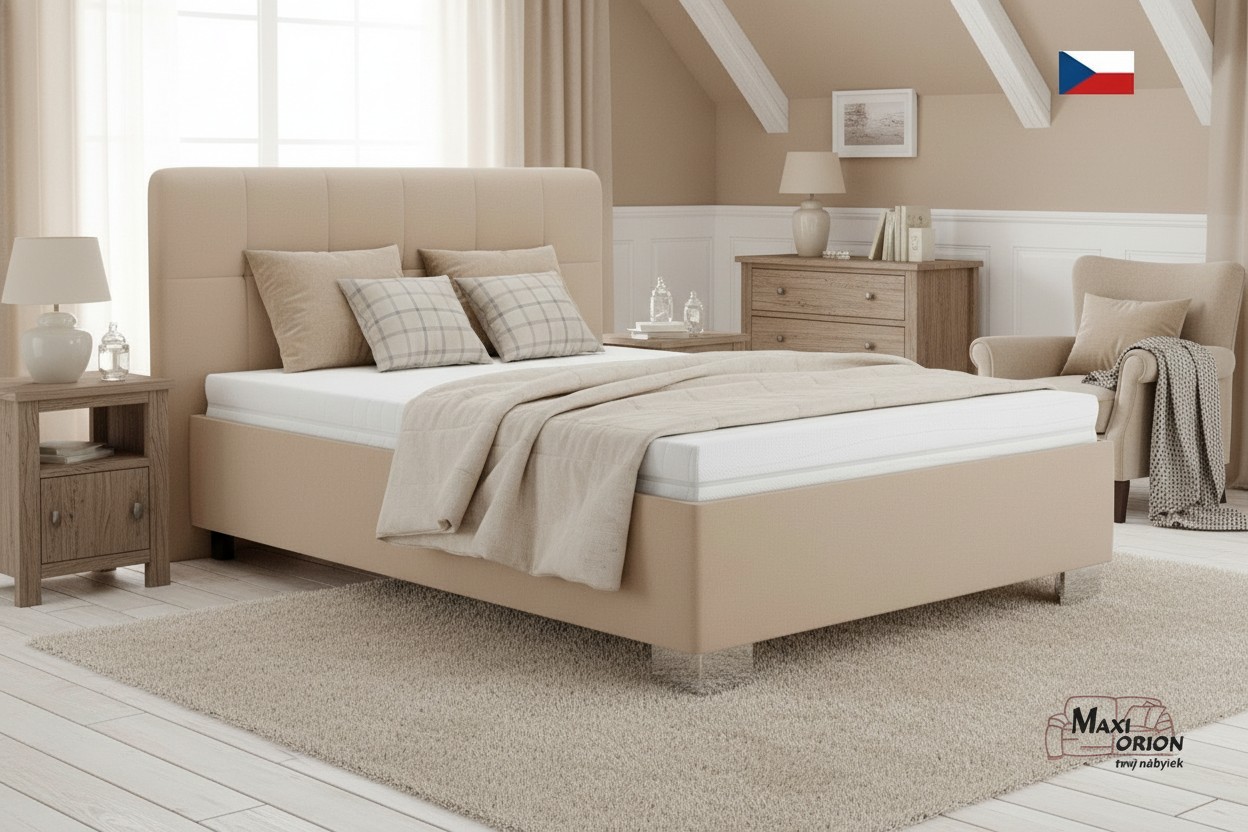 - postel je očalouněna kvalitní sametově hladkou látkou Enjoy odstín Beige - béžová