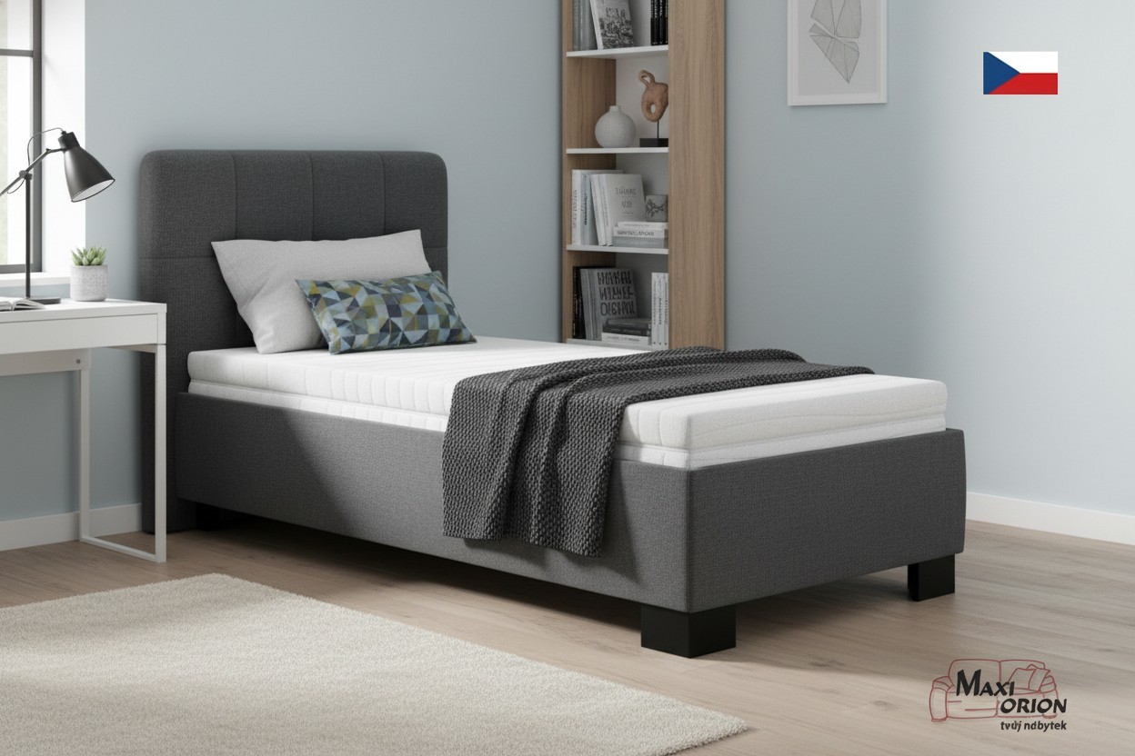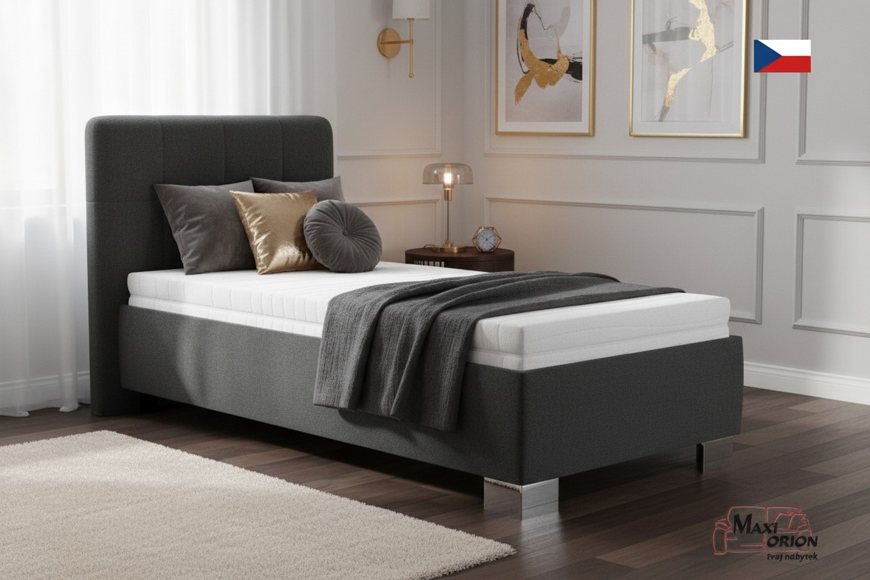 - postel je očalouněna kvalitní sametově hladkou látkou Enjoy odstín tmavě šedá