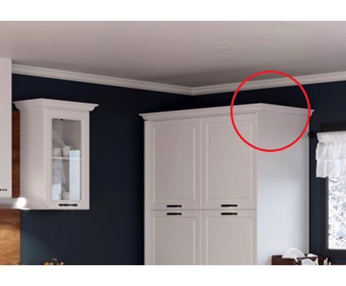 Boční horní věncové lišty pro vysoké skříně hluboké 60cm P/L, bílápro vysoké skříně hluboké se může použít okrasná věncová lišta boční v bílém odstínu, která dodá interiéru starodávný nádech. Kuchyňská linka se oživí. Ty jsou dodávané 1ks pravý a levý. Boční horní věncové lišty pro vysoké skříně hlu