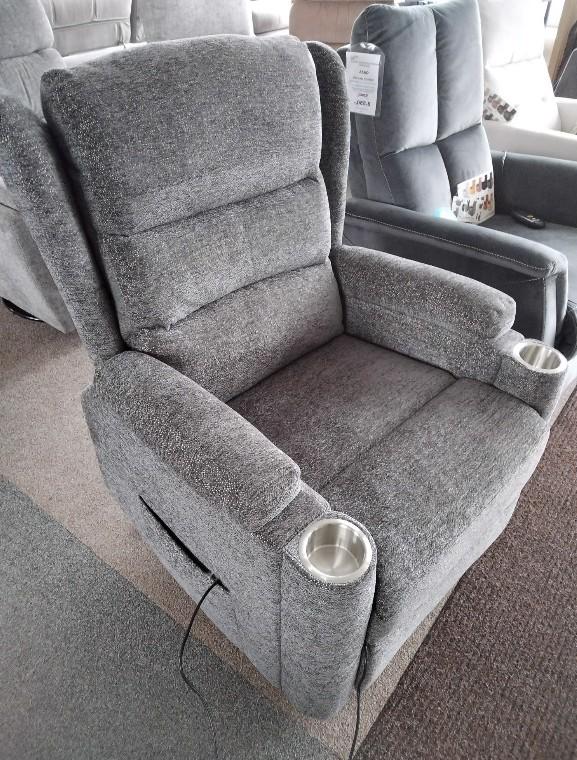 Elektrické polohovací křeslo pro seniory Minos Raven s držáky nápojů – šedé - fotografie z prodejny