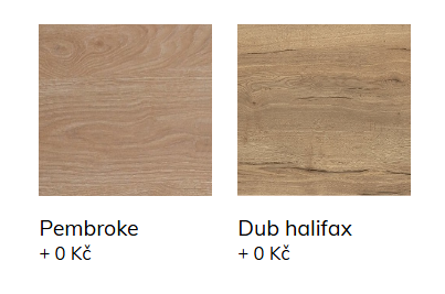 Spodní rohová skříňka široká 90 na 50 cm. Nutné počítat s šířkou 105 na 65 cm. Skříňka je univerzální (pravé a levé provedení). Nový typ dvířkoviny se zafrézovaným úchytem o síle 18 mm ve dvou odstínech. Výběr z odstínu dub Halifax a Pembroke.