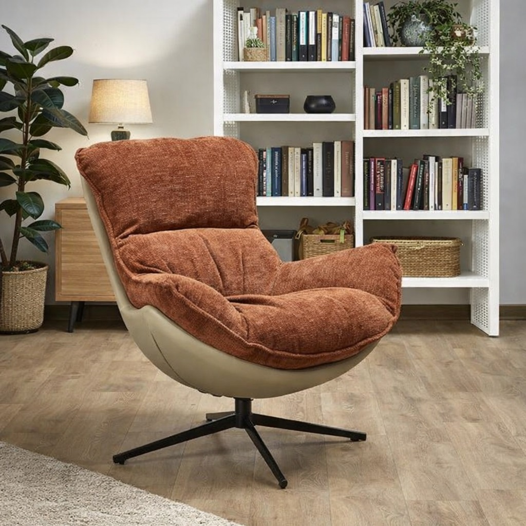 Křeslo Lobster je výrazný designový kousek, který okamžitě přitáhne pozornost. Elegantní kombinace skořicově hnědého čalounění a světlého korpusu vytváří moderní kontrast, jenž se skvěle hodí do současných interiérů.