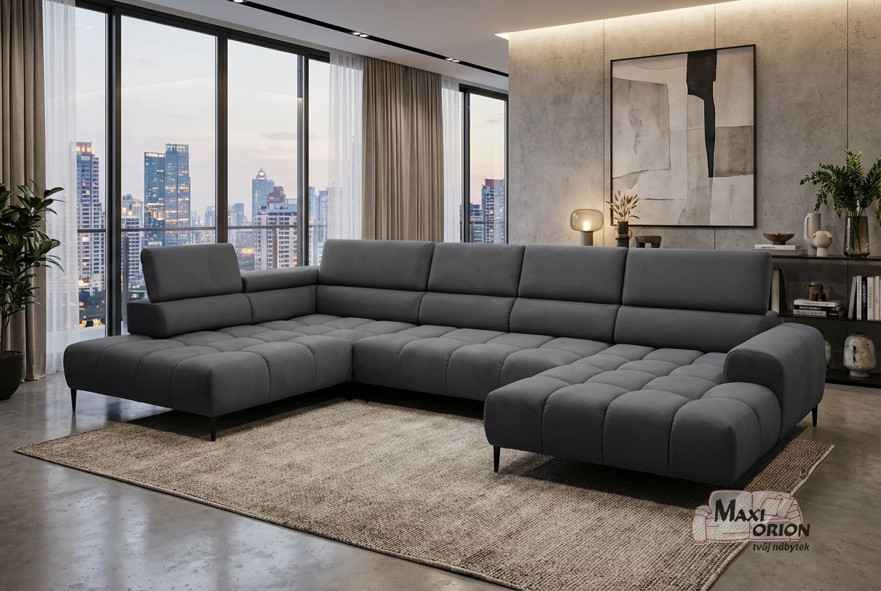 Elektrická rozkládací sedací souprava do U - Elektric XL - Tmavě šedá