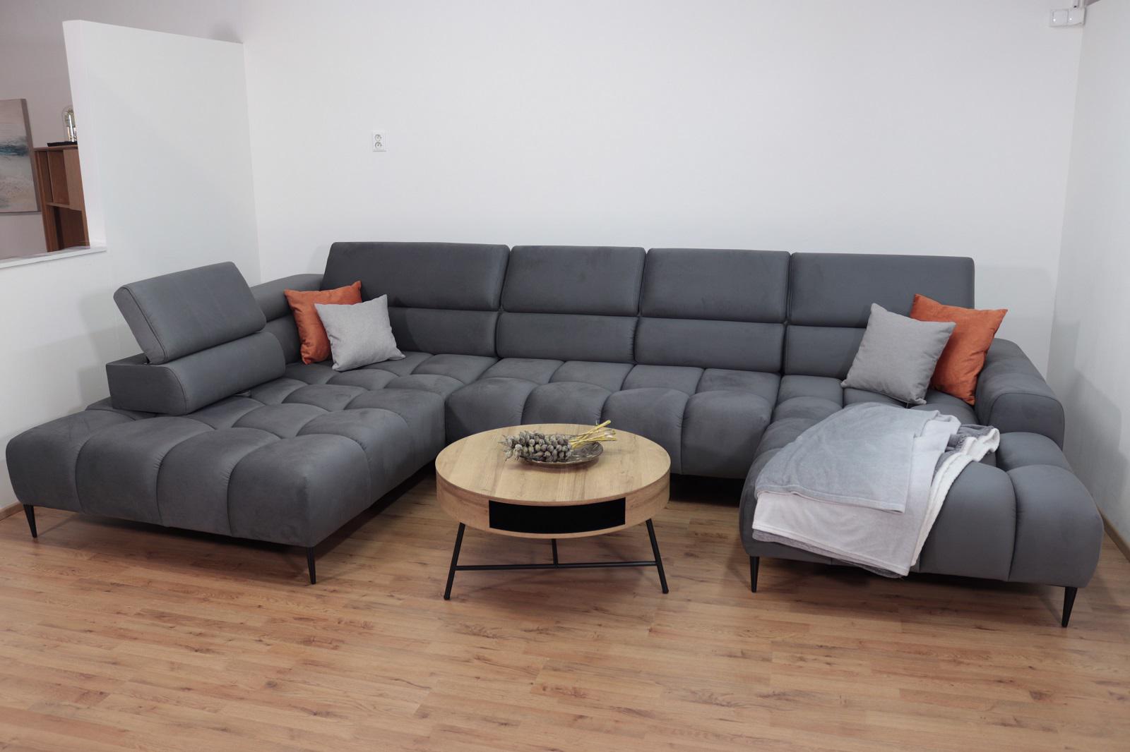 Objevte dokonalé spojení pohodlí, stylu a moderních technologií s elektrickou rozkládací sedací soupravou do U – Elektric XL v elegantní tmavě šedé barvě. Tato luxusní sedačka, čalouněná odolnou látkou Solar 96, zaujme svým sofistikovaným vzhledem. Díky elektrickému rozkladu, výsuvné relaxační funkci a šesti polohovatelným záhlavníkům si snadno přizpůsobíte sezení přesně podle svých představ. Pevná konstrukce z masivního dřeva a dřevotřísky, v kombinaci s PUR pěnou a pružinami faliste. Celek elegantně doplňují vysoké černé kovové nožky, které dodávají sedací soupravě vzdušnost a moderní vzhled.
