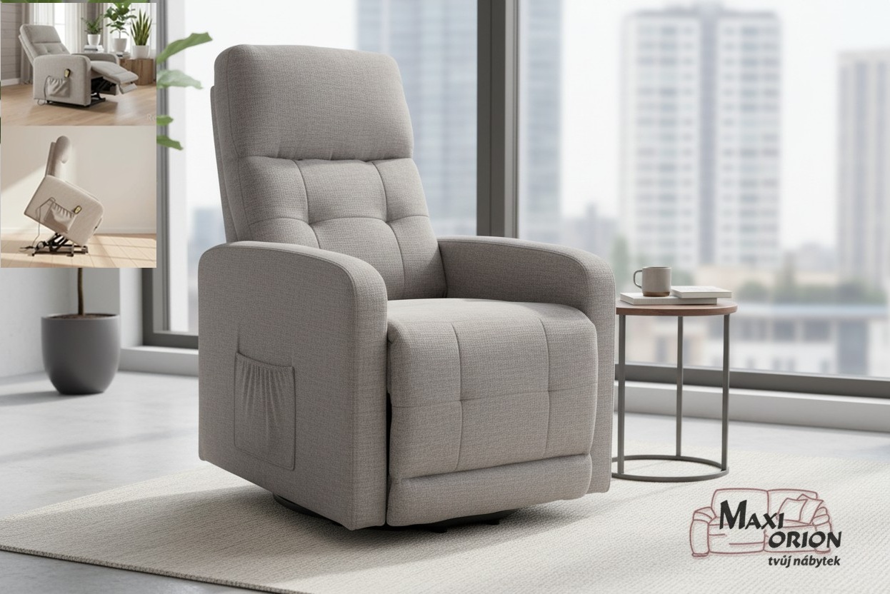 Elektrické relaxační křeslo pro seniory se zvedacím mechanismem - Šedá