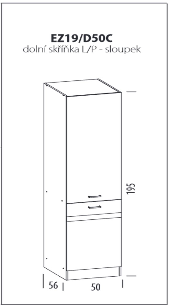 Rozměry skříňky (V x Š x H): 195 x 50 x 56 cm