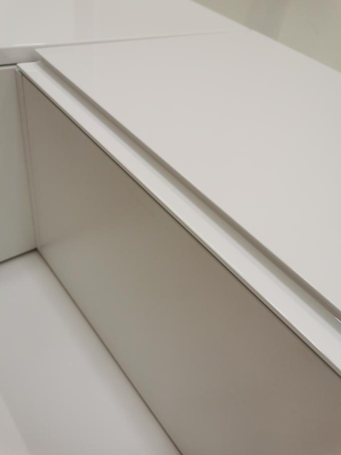 Dvířkovina MDF  lakovaná na vysoký bílý lesk.