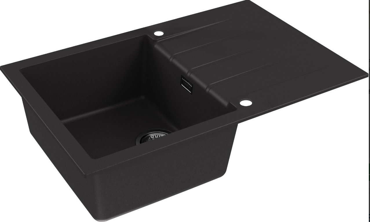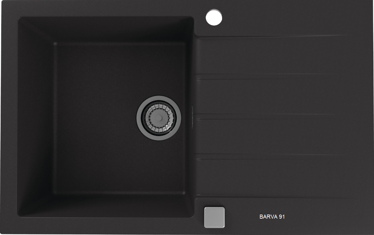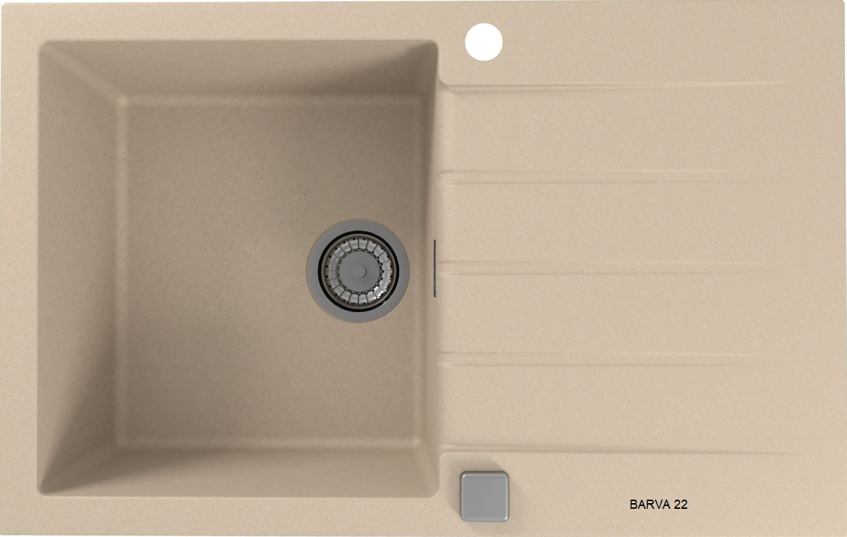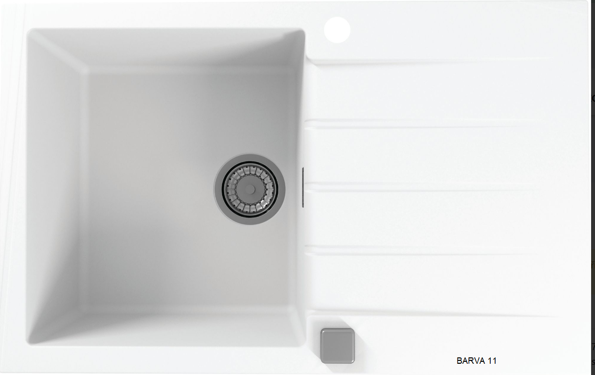 Granitový dřez s odkapem, provedení White 11, otočný, rozměr 790 x 500 mm, vana 375 x 425 x 200 mm, horní montáž, minimálně 50 cm skříňka, s excentrem, 2 otvory z výroby. Zvolenou barvu baterie napište do poznámky.