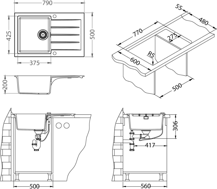 Rozměr dřezové nádoby: 375 x 425 x 200 mm