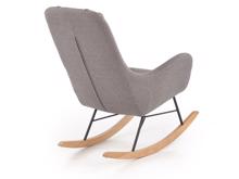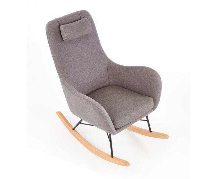 Houpací křeslo BOTAS má sedák a opěradlo čalouněné šedou látkou. Nohy jsou z kvalitního dřeva. Součástí křesla je polštářek, který podepře hlavu.