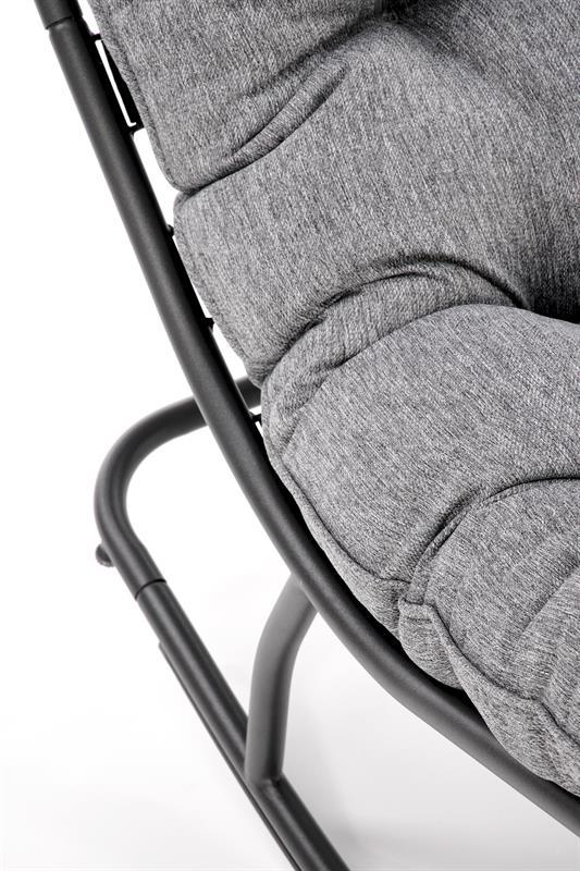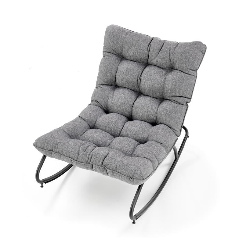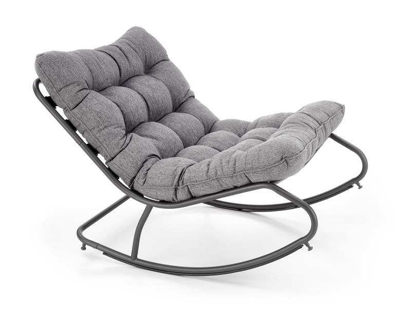 Bezpečnostní zarážky na koncích ližin brání nežádoucímu převrácení, takže si můžete odpočinek užít bez obav. Měkká poduška čalouněná šedou tkaninou poskytuje vysoký komfort při sezení a díky geometrickému prošívání působí křeslo moderně a elegantně.