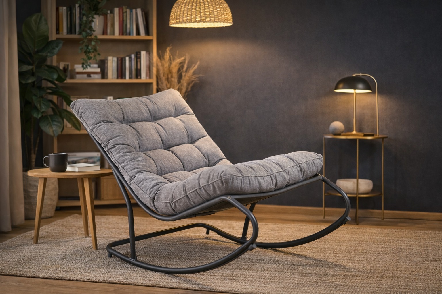 Houpací křeslo Gatto je ideální volbou pro chvíle klidu po náročném dni. Stabilní kovová konstrukce z černé práškově lakované oceli zajišťuje pevnost a dlouhou životnost, zatímco ergonomicky tvarované ližiny umožňují příjemné a plynulé houpání.