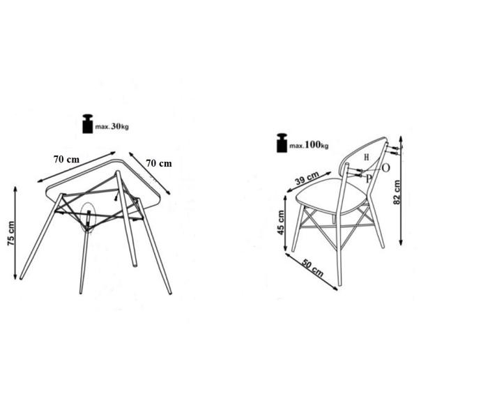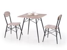 Hledáte jídelní set do menšího interiéru? Jídelní set Kabir bude správným řešením! Set je vyroben z kombinace laminovaného MDF materiálu, nohy z práškované oceli. Součástí jídelního setu jsou dvě židle, které jsou vyrobeny ve stejném dekoru jako čtvercový stůl. Jídelní set lze umístit i do veřejných prostor kaváren, restaurací a hotelů.