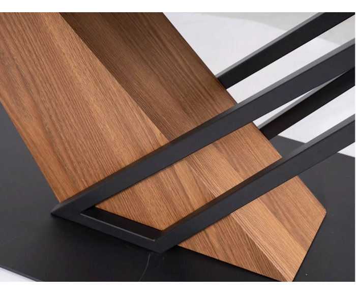 Nohy jídelního stolu Genesis jsou pevné a elegantní. Vyrobené z kvalitního kovu a poskytují maximální stabilitu. Černá matná barva dodává moderní a luxusní vzhled, který ladí se stolem s mramorovými prvky. Strategické uspořádání nohou zajišťuje pohodlné sezení a dostatek prostoru.
