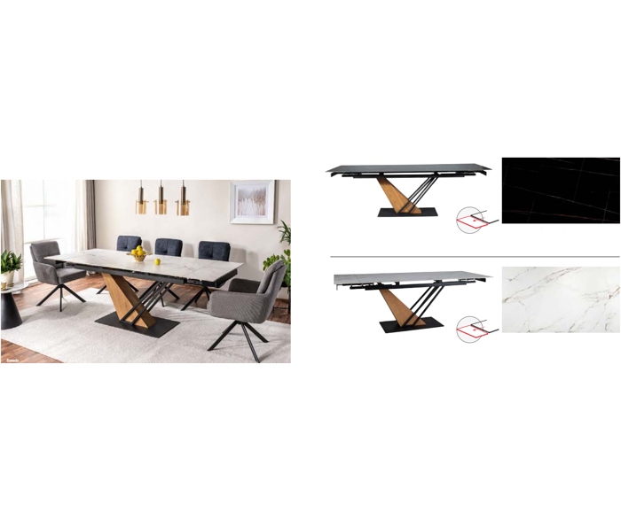 Deska stolu Genesis je vyrobena z vysoce kvalitní keramiky, která je nejen odolná, ale také snadno udržovatelná. Její povrch s mramorovým vzorem přináší do Vašeho domova jemný dotek přírodního kamene, a to z něj činí atraktivní prvek.