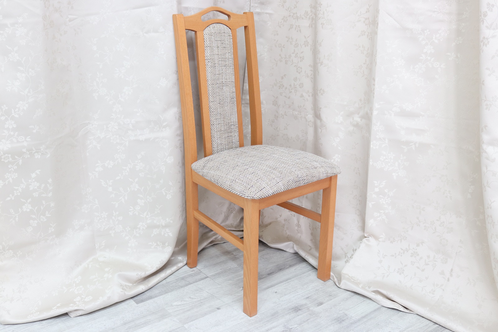 Elegantně vyrobená čalouněná židle Bos 9 má sedák a středovou část opěradla potaženy kvalitní potahovou látkou, kterou si lze objednat v různých variantách. Je vyrobena z bukového dřeva.