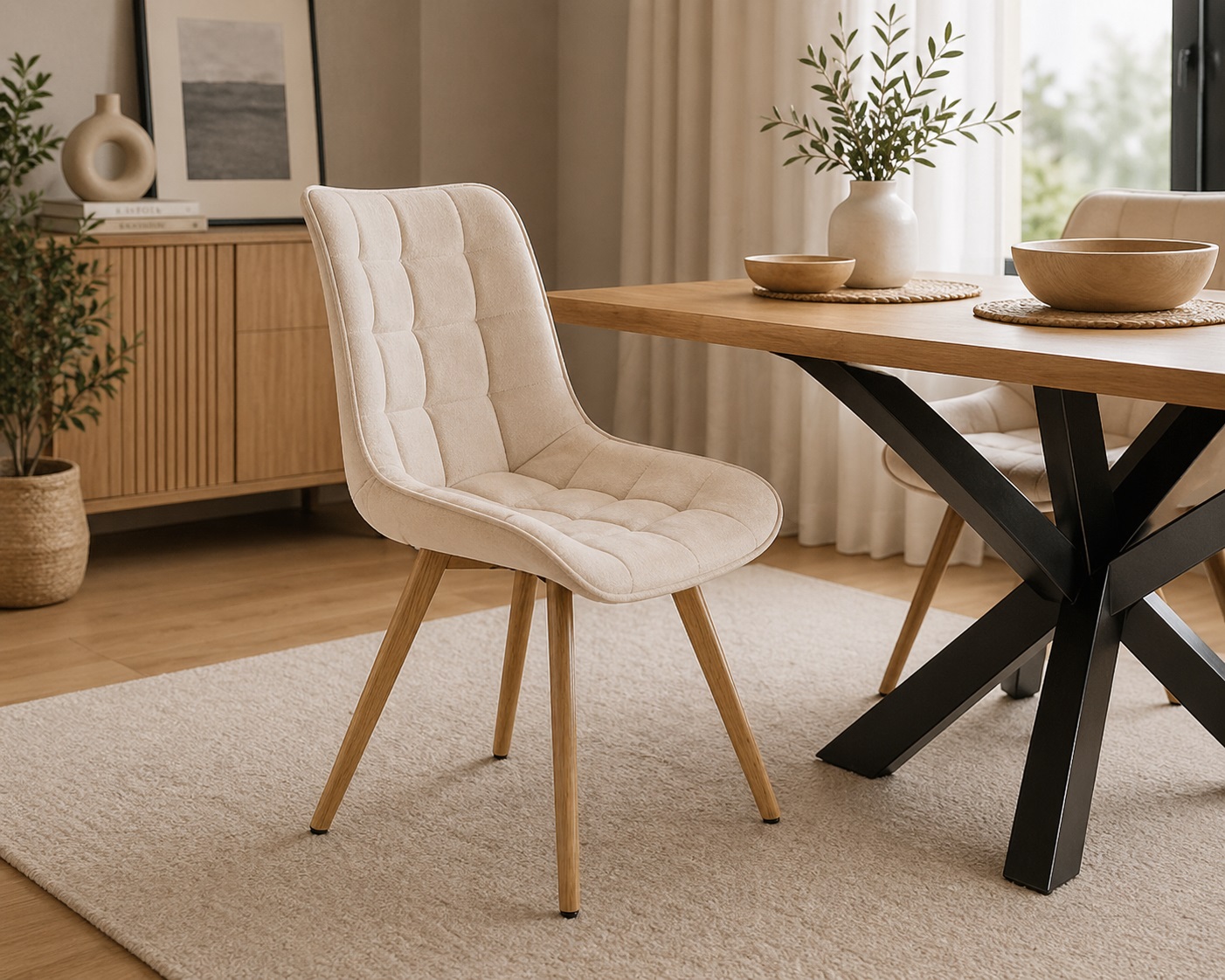 Jídelní židle K332 WD zaujme moderním designem a příjemně měkkým čalouněním. Prošívaný sedák i opěradlo zajišťují pohodlné sezení i při delším stolování, zatímco štíhlé nohy v dekoru přírodního dřeva dodávají židli lehkost a eleganci.