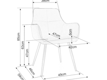 Jídelní židle s područkami Lemon Velvet je konstruována z odolného kovového rámu, v černé matné barvě. Tento pevný rám je čalouněný béžovou sametovou látkou Bluvel. Židle stojí na černých kovových nožkách a její maximální zatížení je 120 kg.