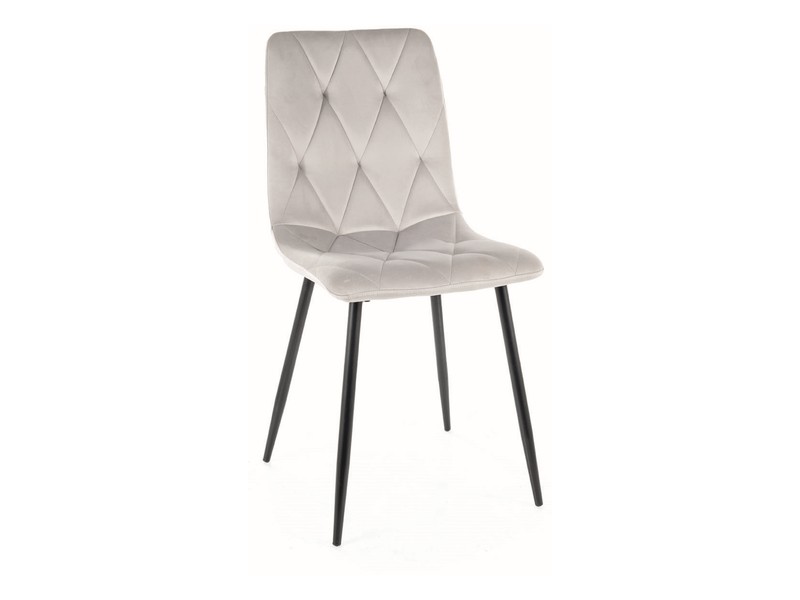 Jídelní židle je tvořena z kovového rámu a sedáku čalouněné látkou Velvet. Černé kovové nohy zaručují stabilitu a spolehlivost s nosností až 120 kg.