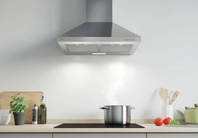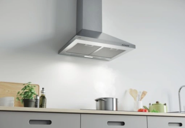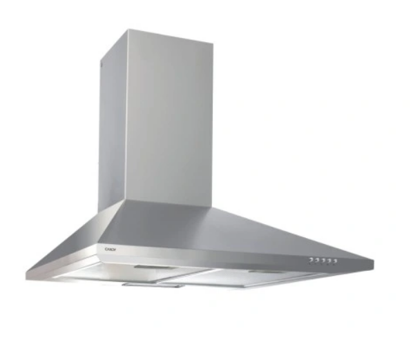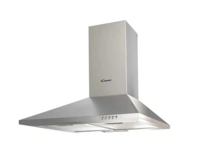 Komínový odsavač par Candy CCE 116 X, max výkon 305 m3/h, odtah i recirkulace, tlačítkové ovládání, osvětlení LED žárovkou, hliníkový filtr.