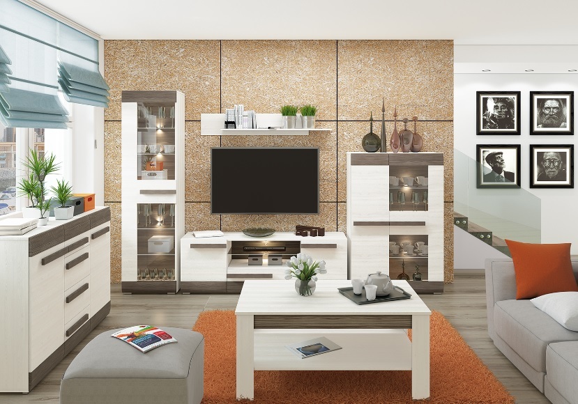 Komoda Biano 07 je součástí systému Biano, tento systém zaujme výjimečným designem. Barevné provedení působí na první pohled velice harmonicky a skvěle ho doplňují dřevěné úchytky, které ladí s lištami v dekoru new grey. Tento systém nabízí mnoho variabilních prvků, díky kterým si můžete vybavit obývací nebo studentský pokoj, ložnici i předsíň. Nábytek je vyroben z kvalitní laminované dřevotřísky odolné vůči nečistotám a je opatřen ABS hranami. Korpus je v odstínu borovice sněžná, čelní plochy jsou v kombinaci borovice sněžná a new grey.