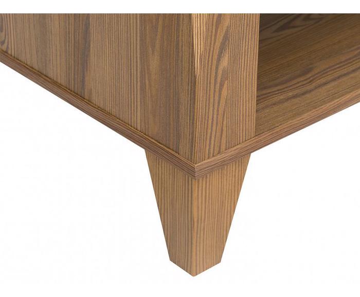 Konferenční stolek Bergen se vyznačuje kombinací geometrických tvarů, originálních detailů a především tlumenými barvami. BERGEN LAW/130  je vyroben v barvě modřín sibiu zlatý. V obývacím pokoji vám zajistí další odkládací plochu, kam můžete uložit všechny věci, které zrovna nepotřebujete. Díky tomu, se stane konferenční stolek stylovou součástí vašeho pokoje. Vrchní deska je pokrytá tvrzenou fólií, díky které se zvyšuje odolnost proti poškrábání. Další nespornou výhodou je snadná kombinovatelnost s ostatním nábytkem ze systému Bergen.