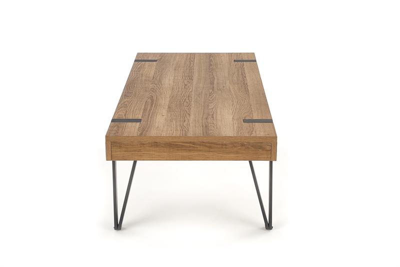 Konferenční stolek TULUZA zaujme elegantní kombinací dekoru medového ořechu a černé kovové konstrukce. Díky svým rozměrům nabízí dostatek prostoru pro každodenní odkládání i servírování, a zároveň si zachovává vzdušný a moderní vzhled.
