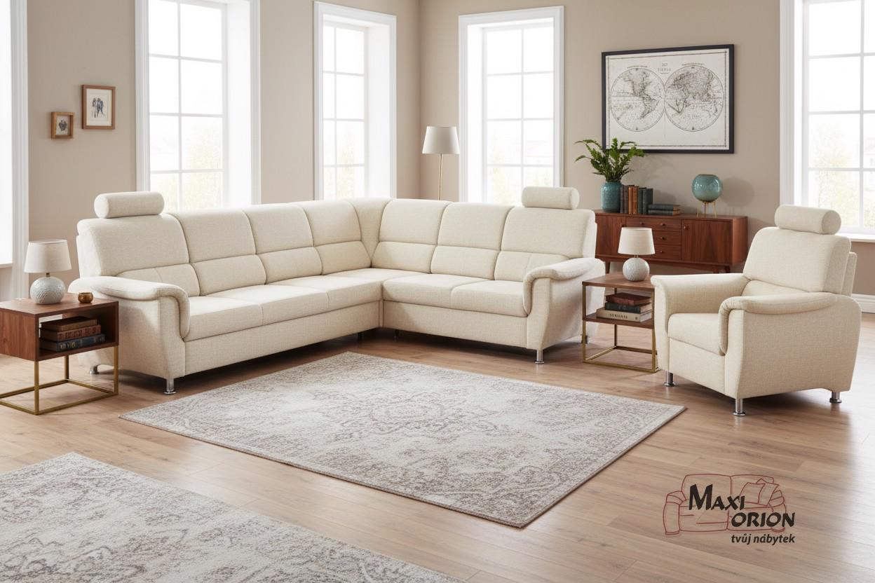 Vyobrazený nábytek, dekorace a polštáře nejsou součástí sedací soupravy.
