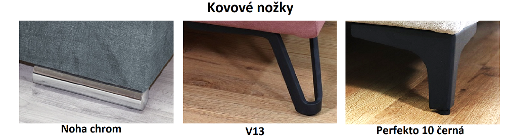 - Nožky jsou kovové, vysoké až 13 cm nebo dřevěné nízké, dle výběru.