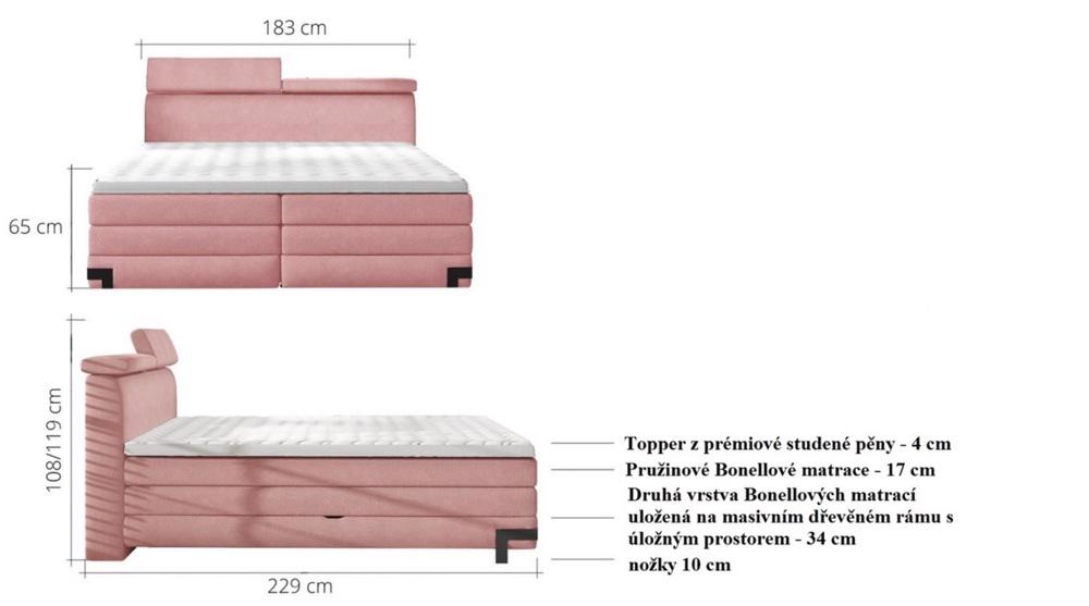 Luxusní kontinentální postel Boxspring Kann 180x200 s úložným prostorem