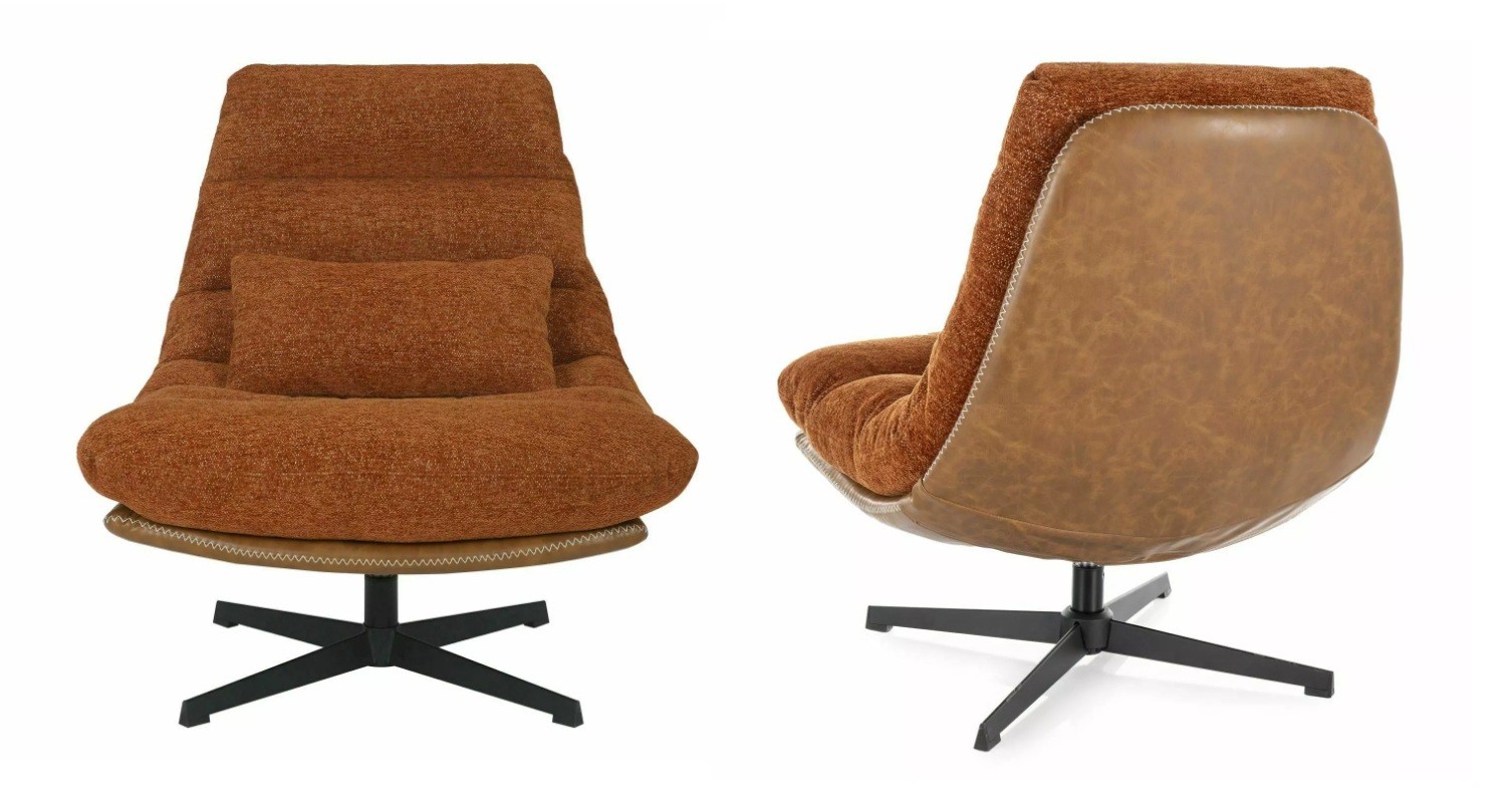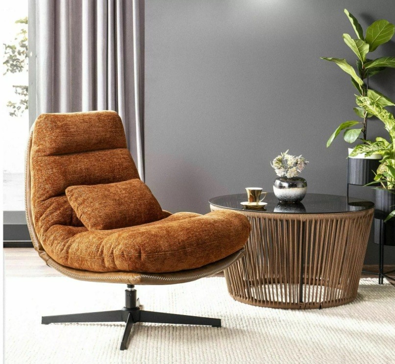 Náš tip: Toto křeslo se nejlépe vyjímá v kombinaci s černým kovovým stolkem a světlým kobercem, kde barva skořice krásně vynikne.