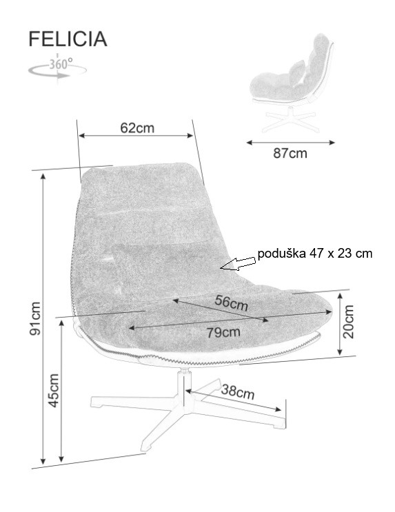 Obsah balení: Křeslo Felicia, bederní polštářek, montážní sada.