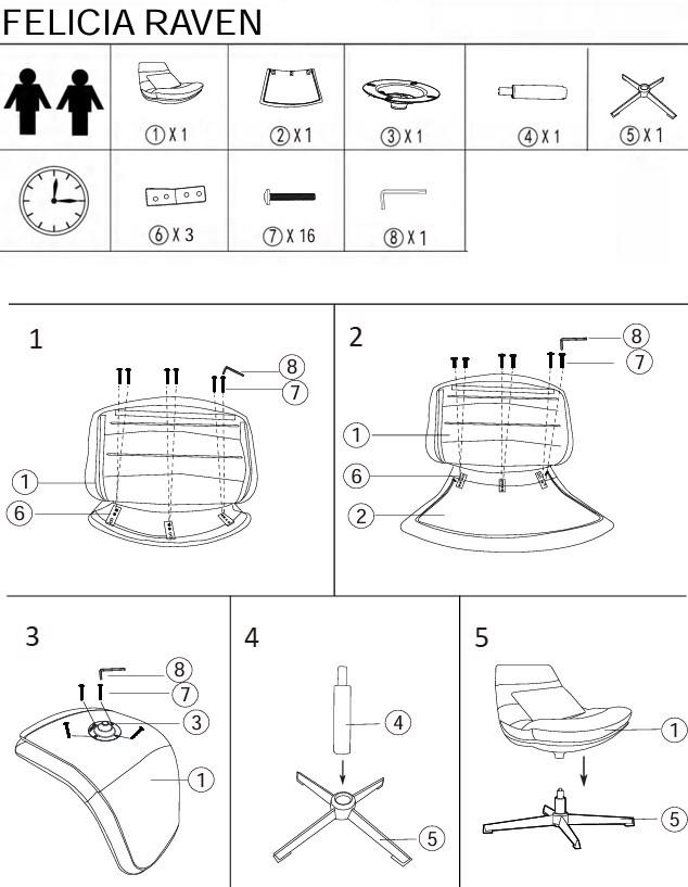 - Montáž: Výrobek je dodáván v demontu s přehledným návodem pro snadnou a rychlou instalaci. Křeslo je baleno v jedné krabici o hmotnosti cca 21 kg.