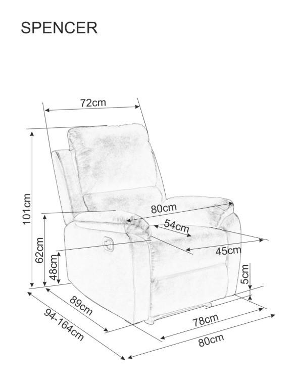 Luxusní polohovací křeslo SPENCER 1 Velvet – Šedý samet Bluvel 14