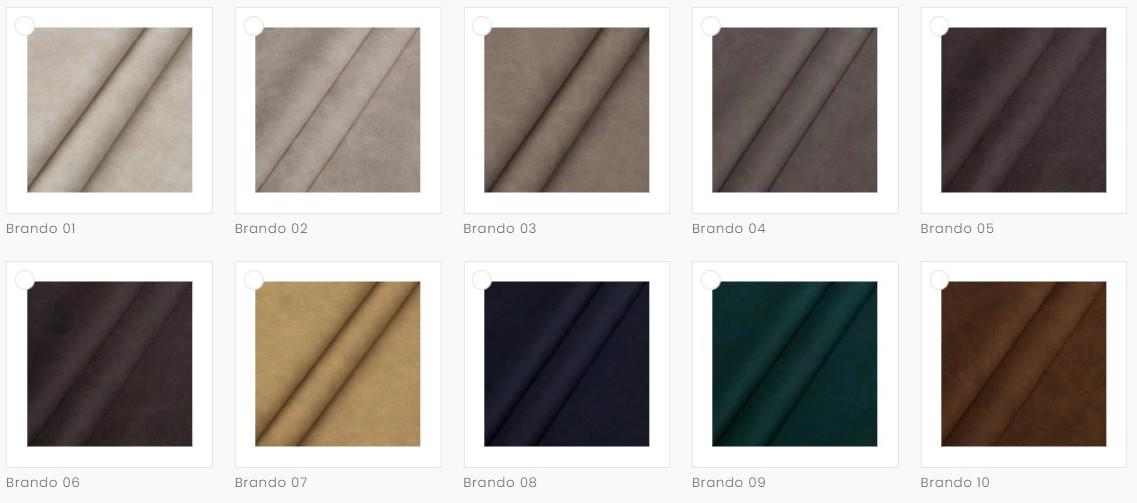 Varianta V2L+V3+V4R nabízí funkci spaní a 2 otomany s úložnými prostory. Příplatková potahová látka Brando – ideální volba pro zákazníky, kteří chtějí elegantní a odolný materiál s moderním vzhledem imitující kůži.