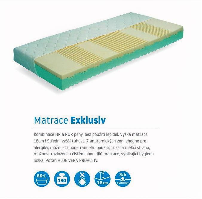 Exklusiv patří mezi tzv. partnerské matrace. Skládá se ze dvou vrstev moderních pěn, které nejsou spojeny lepidlem: