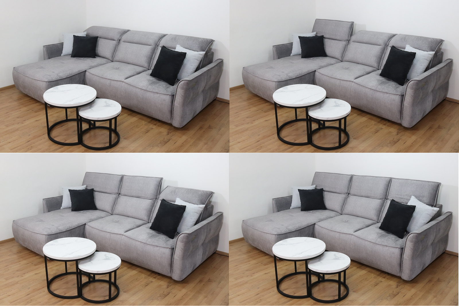 Sedací souprava Valencia S je vybavena třemi záhlavníky, které mají šest poloh nastavení. Díky tomu si každý uživatel může pohodlně nastavit oporu hlavy podle své potřeby – od vzpřímené polohy vhodné při sezení až po úplné sklopení pro odpočinek či relaxaci. Záhlavníky se snadno nastavují a zajišťují pevné zaseknutí v každé z poloh, což zaručuje stabilitu a komfort při dlouhém sezení. Tento prvek výrazně zvyšuje ergonomii a pohodlí celé sedací soupravy.