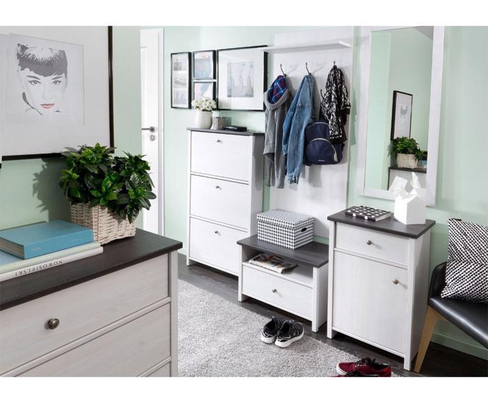 Noční stolek KOM1S/70 má jednu praktickou zásuvku a otevřenou poličku. Systém Porto vyniká jednoduchými tvary, funkčností a praktičností. Tato sestava nábytku ve skandinávském stylu bude v interiéru působit jemným a moderním dojmem. Korpus a přední plochy nábytku jsou v dekoru modřín sibiu světlý. Horní plochy jsou v dekoru borovice larico. Nábytek je vyrobený z dřevotřískových desek s fólií finish, lišty jsou z MDF. Materiál je velmi odolný proti poškrábání a poškození. Nábytek má kolečkové pojezdy zásuvek, závěsy Hettich, kovové úchytky Siro. Jednotlivé prvky systému lze libovolně kombinovat.