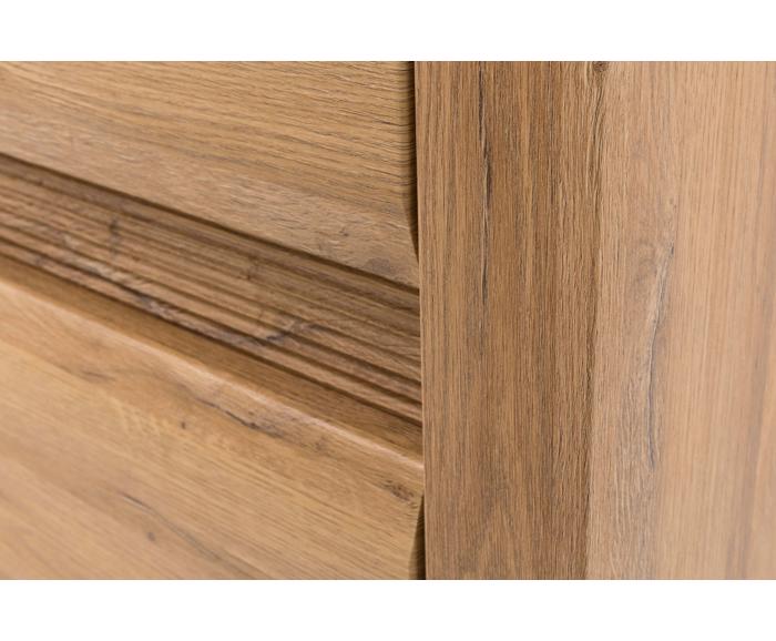 Obývací pokoj SANDY je vyroben z vysoce kvalitní laminované desky v odstínu světlého dřeva dub Granson. Korpus o síle 16 mm, čílka šuplíků a dvířkovina o síle 18 mm a horní deska je zesílená 22 mm. Hrany jsou ošetřeny ABS hranou se zvýšenou odolností LED osvětlení v ceně. Skříňky jsou na černých plastových nožkách. Panty jsou nastavitelné ve 3 polohách. Vyznačuje se minimalistickým designem, jemnými teplými barvami, originálními frézovanými drážkami. Skleněné police příborníku a ozdobné vlnité lišty jsou doplněny osvětlením. Tento systém se skládá z 11 prvků, které lze libovolně kombinovat. Celou nabídku naleznete zde. Termín dodání 6 týdnů od zaslání objednávky.
