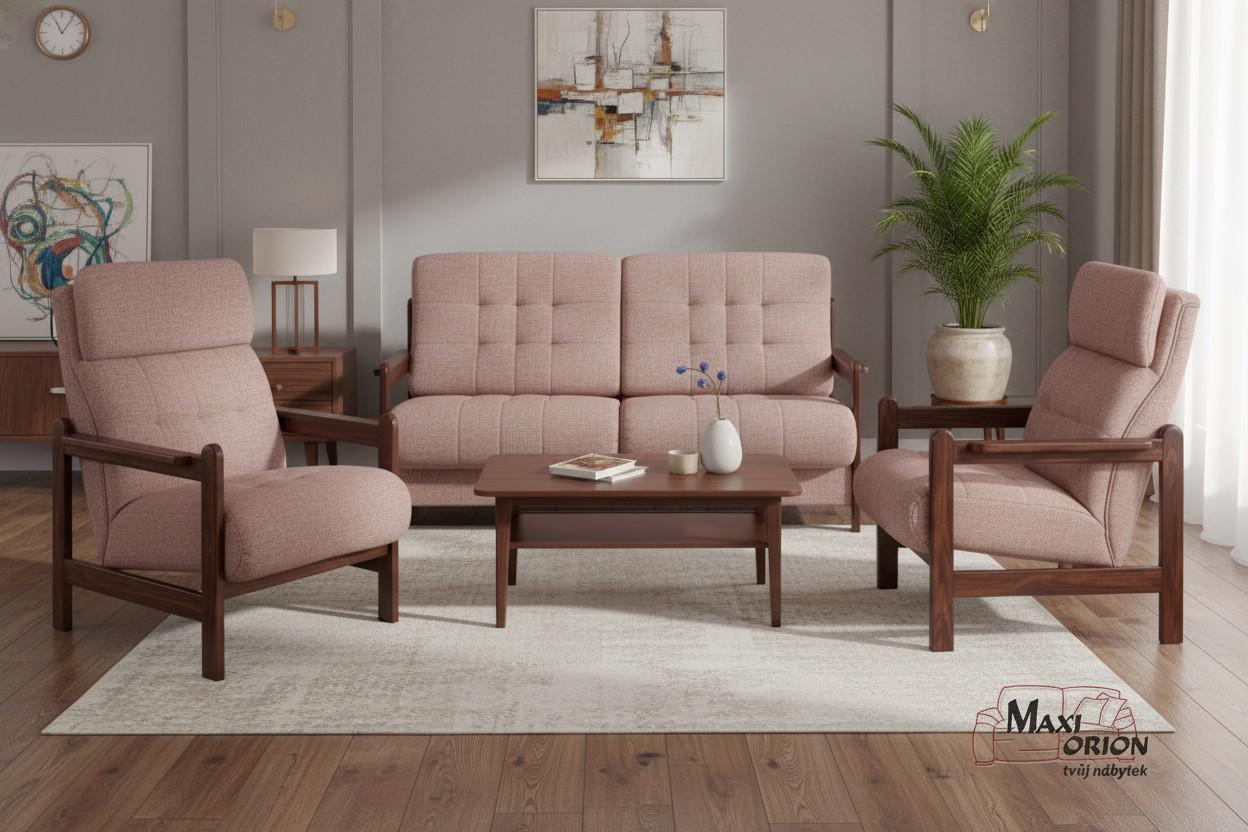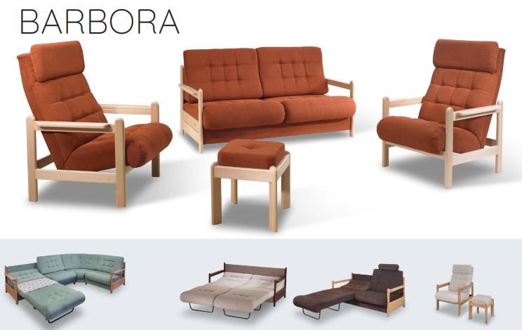 Sedací souprava Barbora spojuje klasický vzhled, poctivé ruční zpracování a praktické funkce, díky nimž skvěle zapadne i do menších bytů. Masivní bukové boky, kvalitní sedáky a pečlivé čalounění zajišťují dlouhou životnost i pohodlné sezení. Rozkládací dvojsedák umožňuje samostatné rozložení dvou lůžek, což oceníte při příležitostném spaní. Soupravu lze přizpůsobit Vašemu interiéru díky širokému výběru potahových látek a moření, případně ji rozšířit o další křesla, taburety nebo polštáře. Každý kus je vyráběn na zakázku, aby dokonale odpovídal Vašim představám a prostoru.