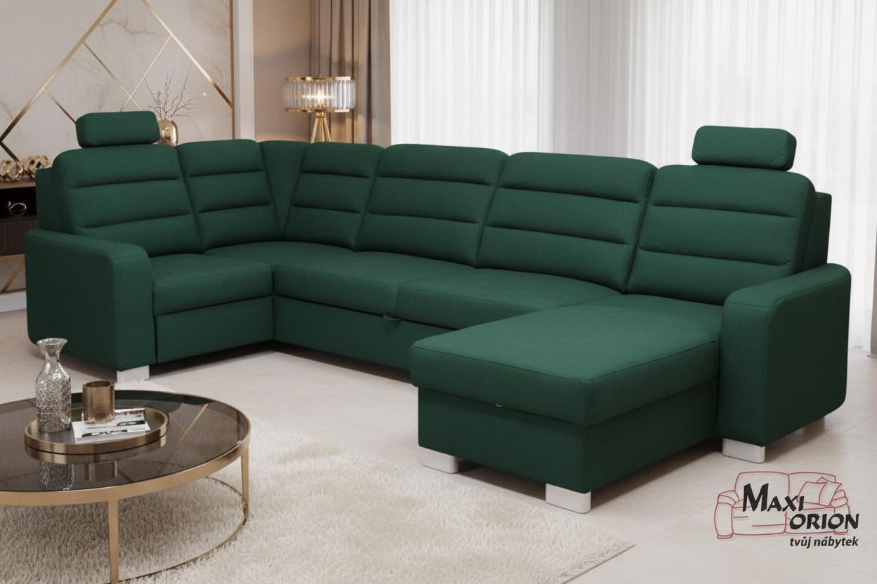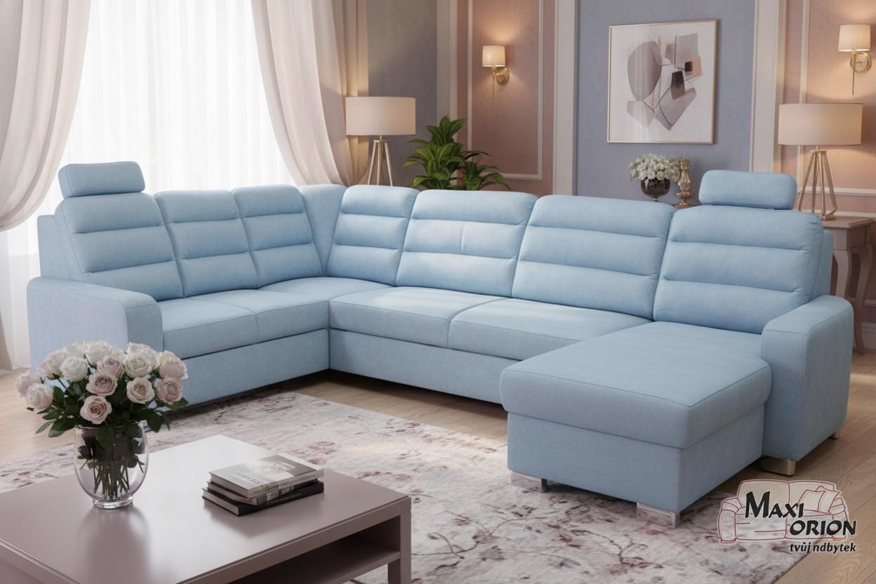 - Sedací souprava do tvaru U. OT(P)-2,5F-R-2(L) se skládá z otomanu s područkou a opěrkou hlavy + středový díl dvojsed s rozkládacím lůžkem, plocha spaní 150x120 cm + rohový díl + dvojsed s područkou, úložným prostorem a opěrkou hlavy.