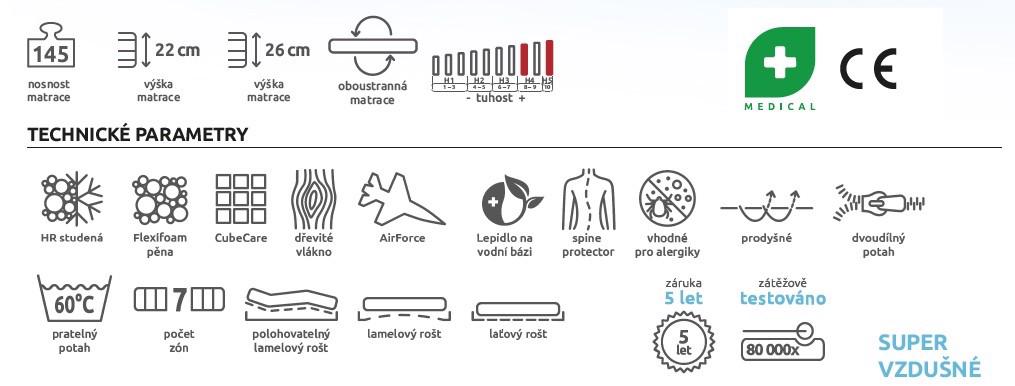 - Maximální hygiena s technologií AirForce: Speciální provzdušňující kanálky zajišťují cirkulaci vzduchu s každým pohybem těla, čímž omezují pocení a udržují matraci svěží.