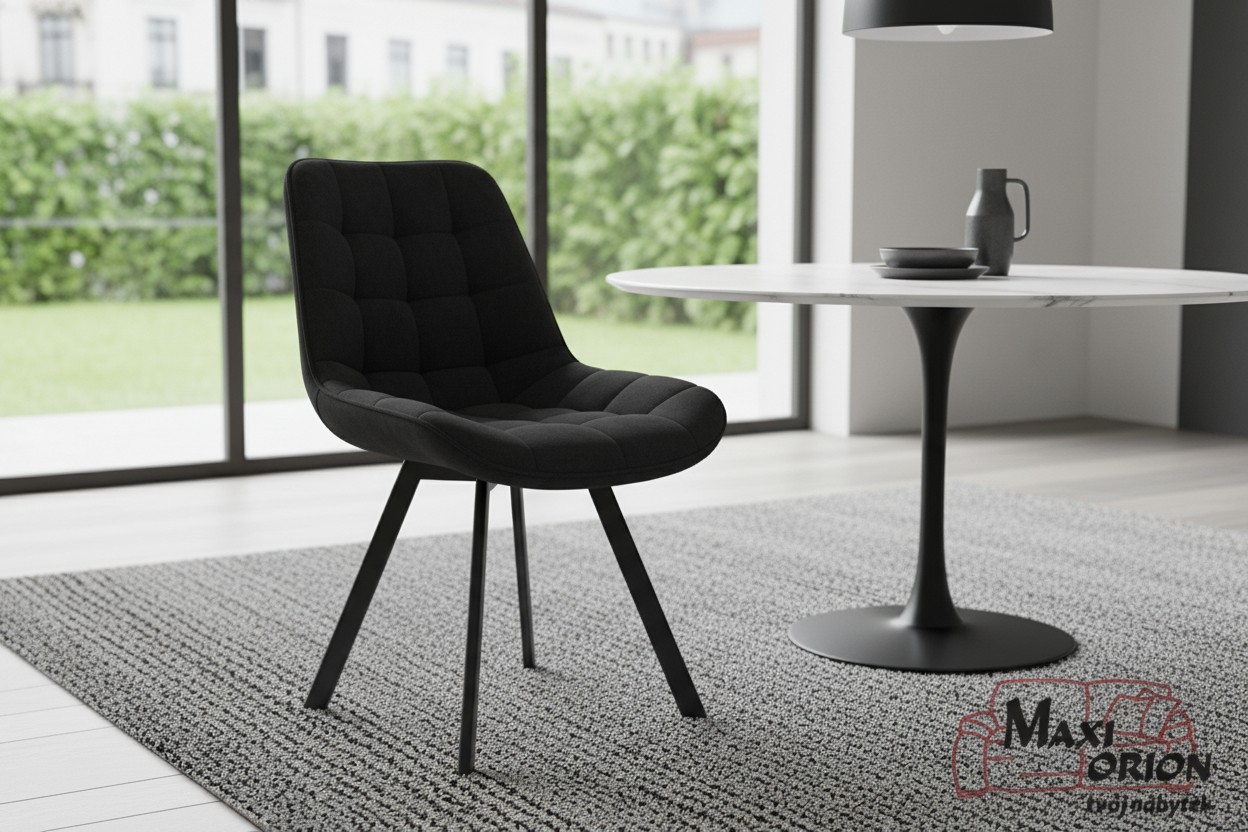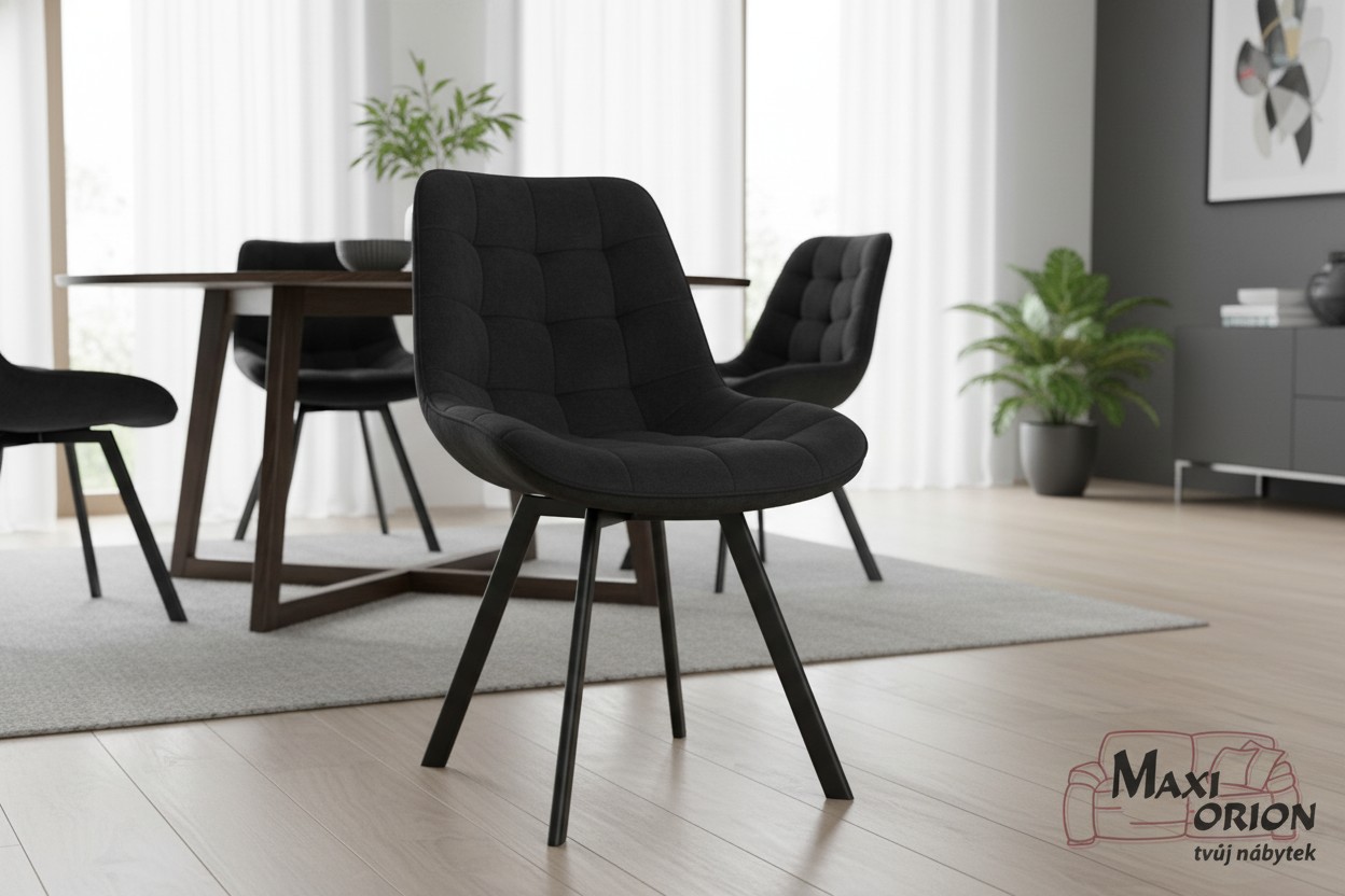 Představujeme Vám elegantní otočnou židli Moty Velvet v nádherné černé barvě, která je dokonalým doplňkem pro každou moderní jídelnu. Tato jídelní židle je potažena kvalitní sametovou látkou Bluvel. Židle je vyrobena z pevného kovového rámu a matná černá barva rámu krásně ladí s černým čalouněním židle.