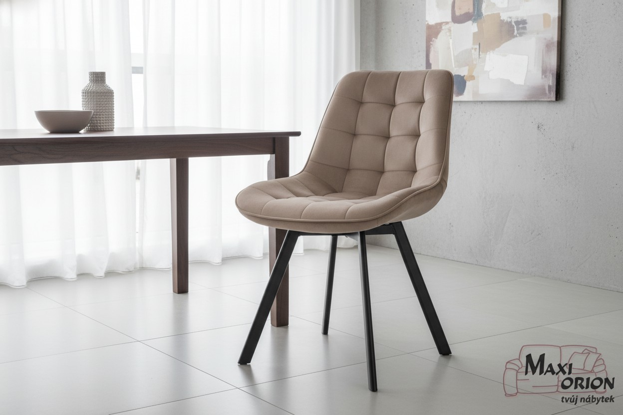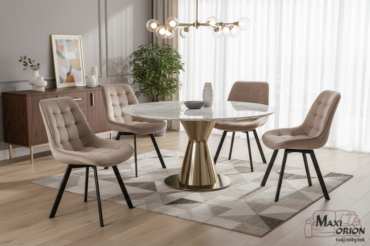 Otočná jídelní židle Moty Velvet - tmavě béžová