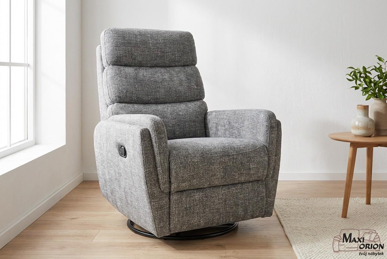 Relaxační otočné a houpací křeslo Raven – šedé, pro seniory