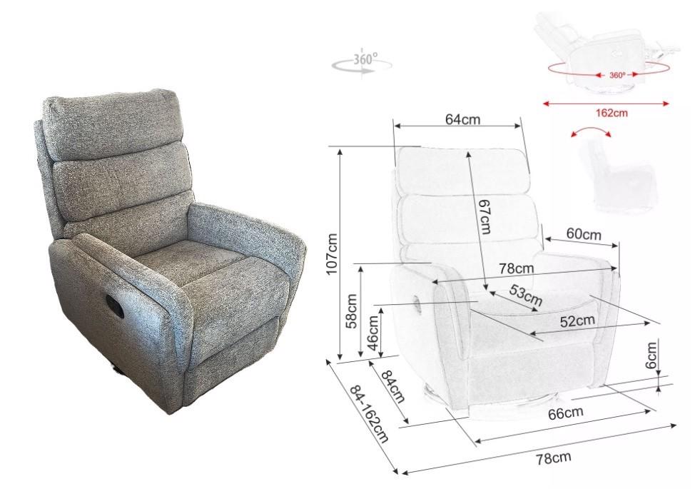 • Vzdálenost pro rozložení: Vzhledem k délce 162 cm v relaxační poloze doporučujeme umístit křeslo alespoň 30–50 cm od stěny, aby se dalo plně sklopit.