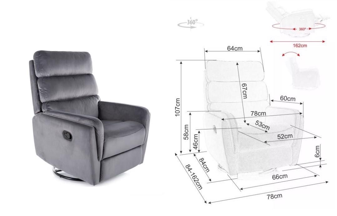 Relaxační otočné a houpací křeslo Velvet – Šedé