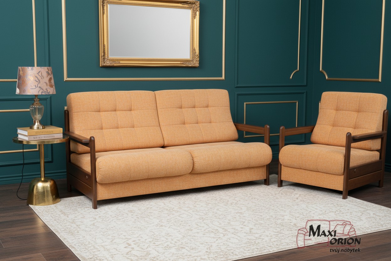 - Ruční zpracování masivního buku na bocích pohovky i křesel.