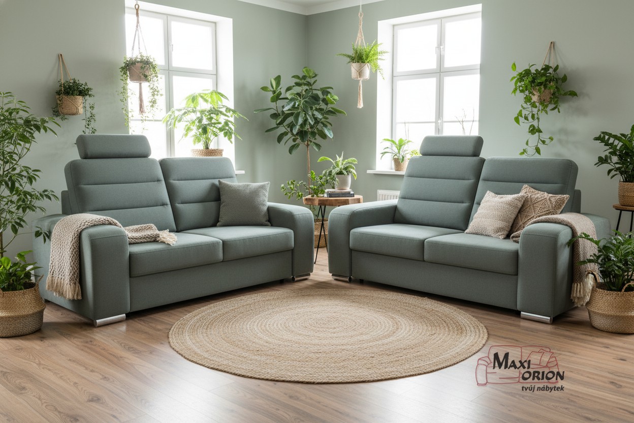 Vyobrazený nábytek, dekorace a polštáře nejsou součástí sedací soupravy.