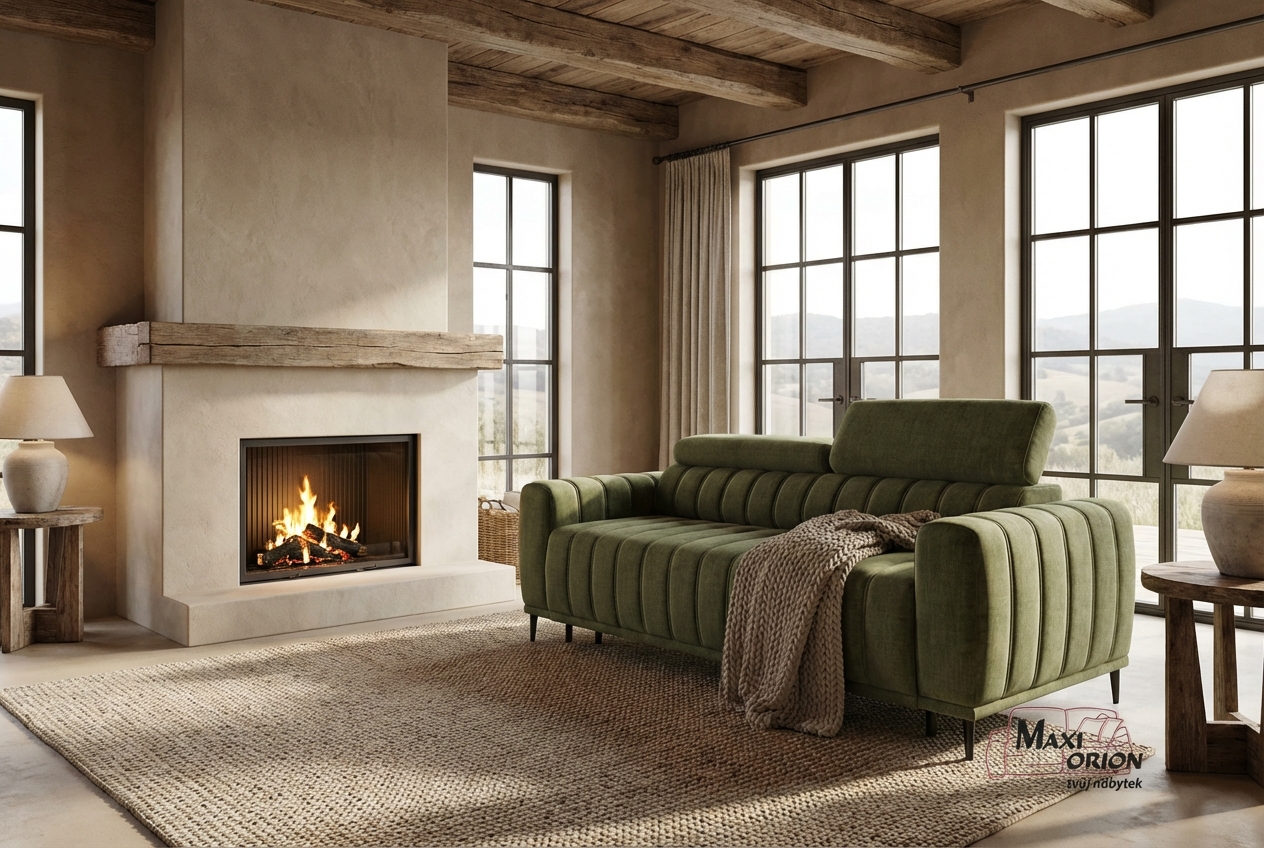 Vyobrazený nábytek, dekorace a polštáře nejsou součástí sedací soupravy.